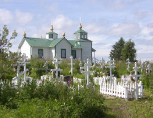 Ninilchik was settled by Russian Native families in the 1830's. The Russian Orthodox Church, poised on a hilltop above the old village is probably the most photographed view on the Kenai Peninsula.
