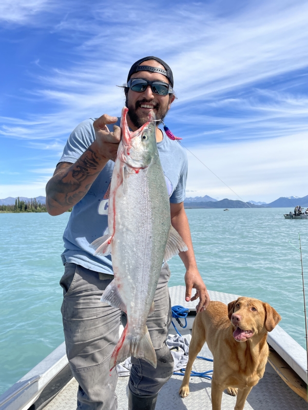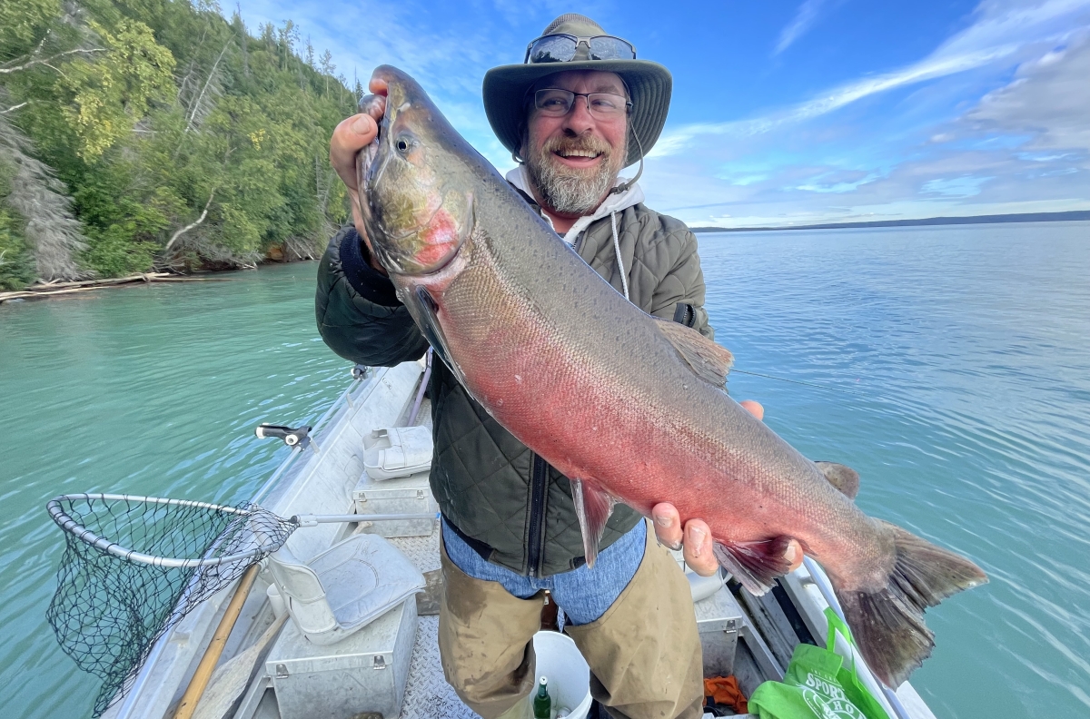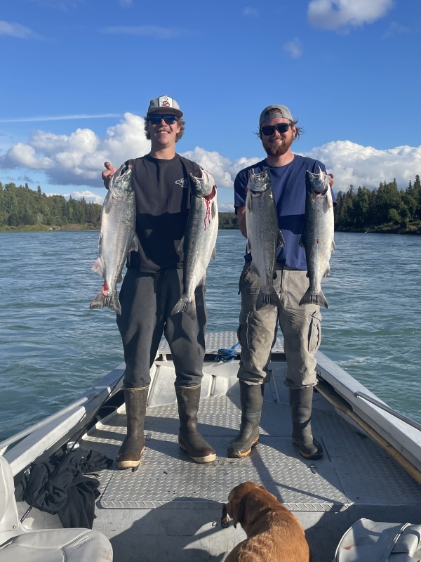 A typical day on the river is roughly 6 hours, starting with a boat ride to the fishing grounds. On the Kenai River, you will ride in a powerboat to the best fishing grounds on the middle river. On the Kasilof River, you will be in a drift boat drifting to your prime fishing location. The drift boat is a slower paced ride providing phenomenal sightseeing as you go. When drifting on the upper Kasilof, you will begin your drift through the Kenai National Wildlife Refuge. Many angles have reported seeing moose, bald eagles and even an occasional bear sighting! Red Salmon fishing is predominately done from the banks while silver fishing is done from the boat. Red Salmon are known for their fight but fishing for them is perfect for all ages and ability levels. Silver Salmon are a very sought after species targeted by many anglers later in the season. Both boats are open vessels, meaning there is no shelter from the elements. Unfortunately, we cannot control the weather and fishing charters run rain or shine so please bring appropriate rain gear and layers to stay warm and dry. Food and beverages are not included but feel free to bring whatever refreshments you prefer while fishing!
