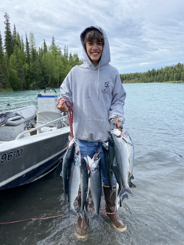 Here at Reel 'Em Inn, we offer chartered Salmon fishing in two of the most popular rivers on the Kenai Peninsula, the Kenai River and the Kasilof River. The Kenai River is located two hours south of Anchorage and about an hour north of Ninilchik. The Kasilof River is about two and a half hours south of Anchorage and only 30 minutes north of Ninilchik. In these rivers, you can find four of the five different species of Alaska salmon. These salmon species include the King (Chinook), Sockeye (Red), Coho (Silver) and Pink Salmon. In order to help preserve the coveted King Salmon, we are not offering charters for this species at this time but we proudly offer Red and Silver salmon fishing trips through the months of June, July, and August. Join us in fishing the most bountiful rivers on the Kenai Peninsula as millions of Salmon run through these rivers each year.